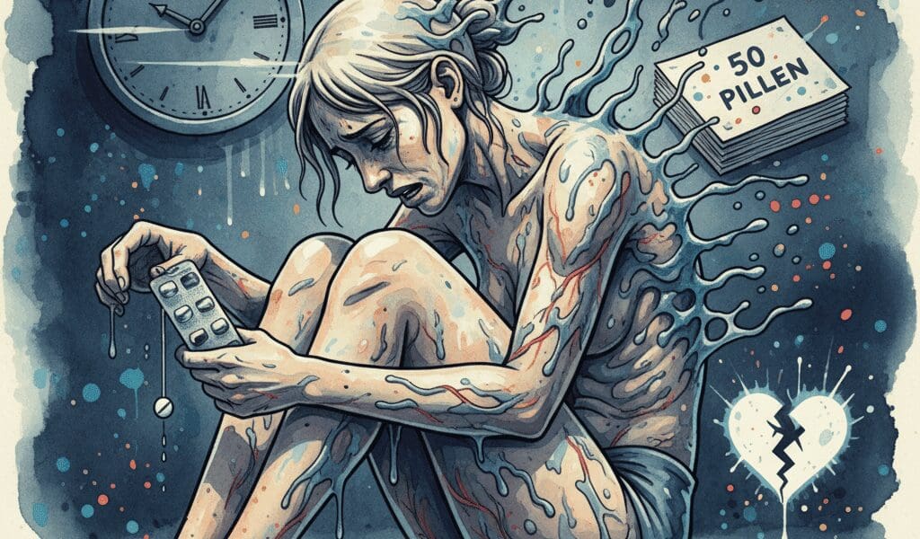 - Die Risiken (Missbrauch & Überdosis): Doxepin hat ein eigenes Abhängigkeitspotenzial. Viel gefährlicher: Eine Überdosis (wie in meiner Geschichte mit 50 Pillen) ist hochgradig lebensgefährlich. Trizyklische Antidepressiva sind kardiotoxisch (giftig für das Herz) und können schnell zu tödlichen Herzrhythmusstörungen und Koma führen.