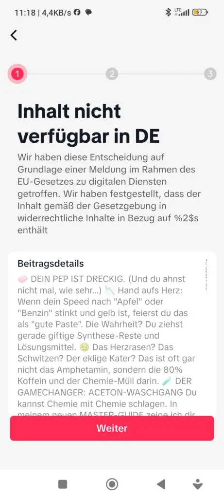 - [Der Vorfall]: Ein virales Video über das Reinigen von Speed (Aceton-Waschen) wurde auf Basis des EU Digital Services Act gesperrt.