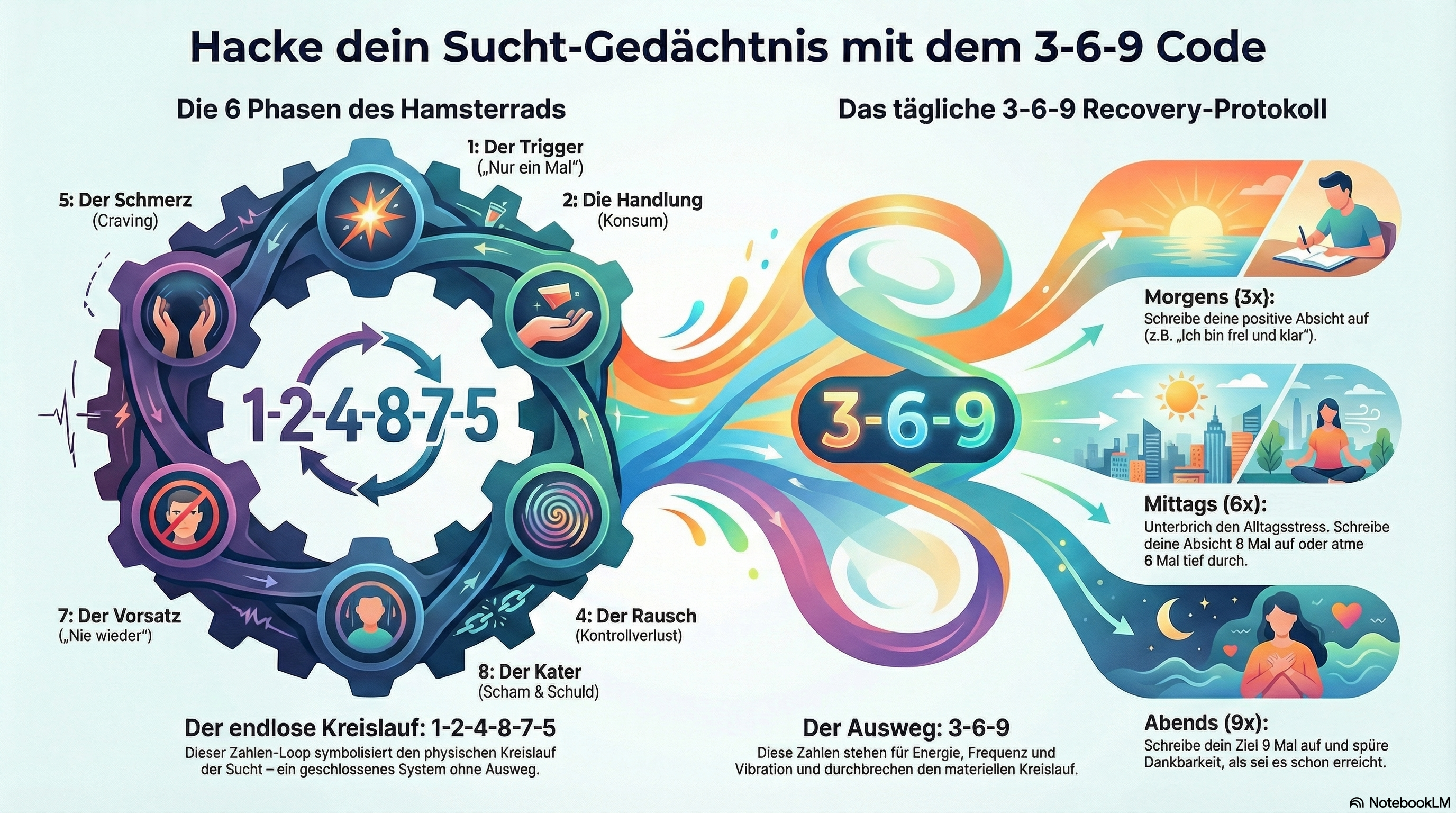 ✅ Ja und Nein. Mathematisch ist das Muster 1-2-4-8-7-5 real (Vortex Math). Psychologisch dient es uns als mächtige Metapher: Um Sucht zu heilen, müssen wir das bekannte System verlassen.